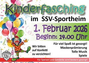 Herzliche Einladung zum Kinderfasching im SSV-Sportheim!