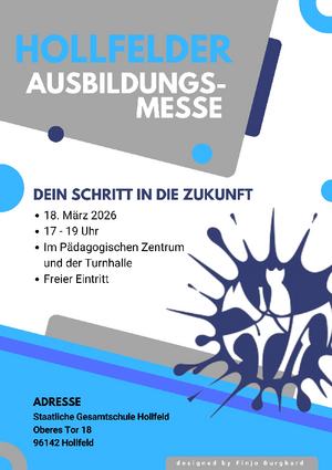 Die Berufsorientierung ist eine der wichtigsten Phasen im Leben junger Menschen. Um Schülerinnen und Schüler bei dieser wegweisenden Entscheidung zu unterstützen, findet am 18. März 2026 von 17.00 bis 19.00 Uhr zum 10. Mal die Ausbildungsmesse der Gesamtschule Hollfeld statt. Um die einhundert Unternehmen, Institutionen und Fachschulen aus der Region stellen sich an diesem Abend im Pädagogischen Zentrum und der Turnhalle der Gesamtschule vor.