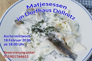 Am Aschermittwoch findet ab 18 Uhr das traditionelle Matjesessen im Dorfhaus Döllnitz statt.